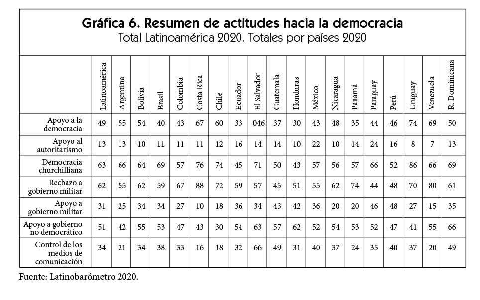 El grave problema de que esto no suceda en el corto plazo es que, como lo reporta Latinobarómetro, si bien hay un rechazo sostenido a gobiernos militares, crece la idea de tener gobiernos no democráticos que pueden derivar en lo que el reporte señala como autocracias populistas. El riesgo que se percibe a partir de los números del reporte no es menor pues hay países que, en conjunto, presentan signos preocupantes de tolerancia al autoritarismo.