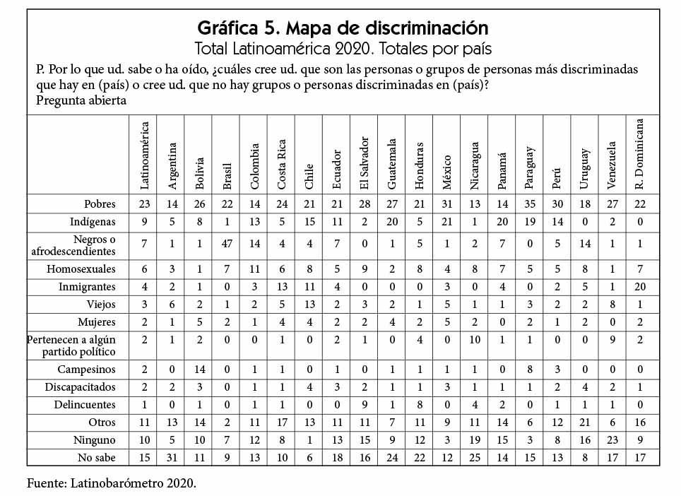 En ese sentido, podrían ser las diversas desigualdades y las formas de discriminación, las que estén jugando contra la confianza en la democracia y sus instituciones, debido a la percepción de injusticia y la falta de un “piso parejo” para las personas.