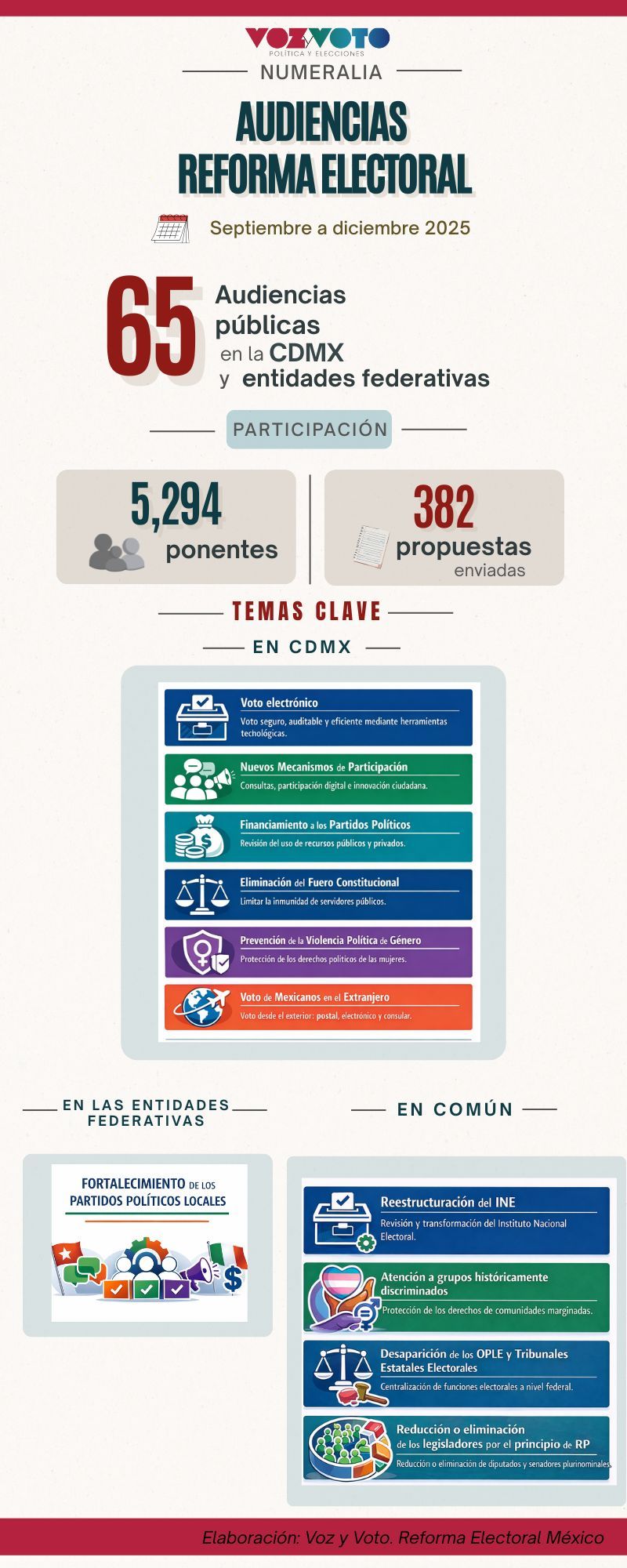 ¿Cuántas audiencias públicas hubo para el tema de la Reforma Electoral en México? ¿Cuántas personas fueron ponentes? ¿Qué temas se tocaron? Eso y más en nuestra infografía